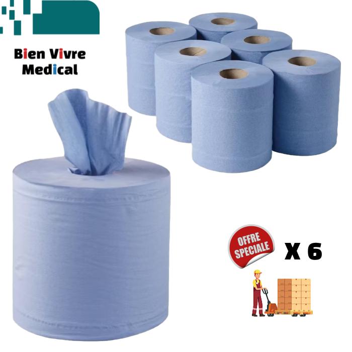 Pack de 6 bobines d'essuyage professionnelles bleues en offre spéciale.